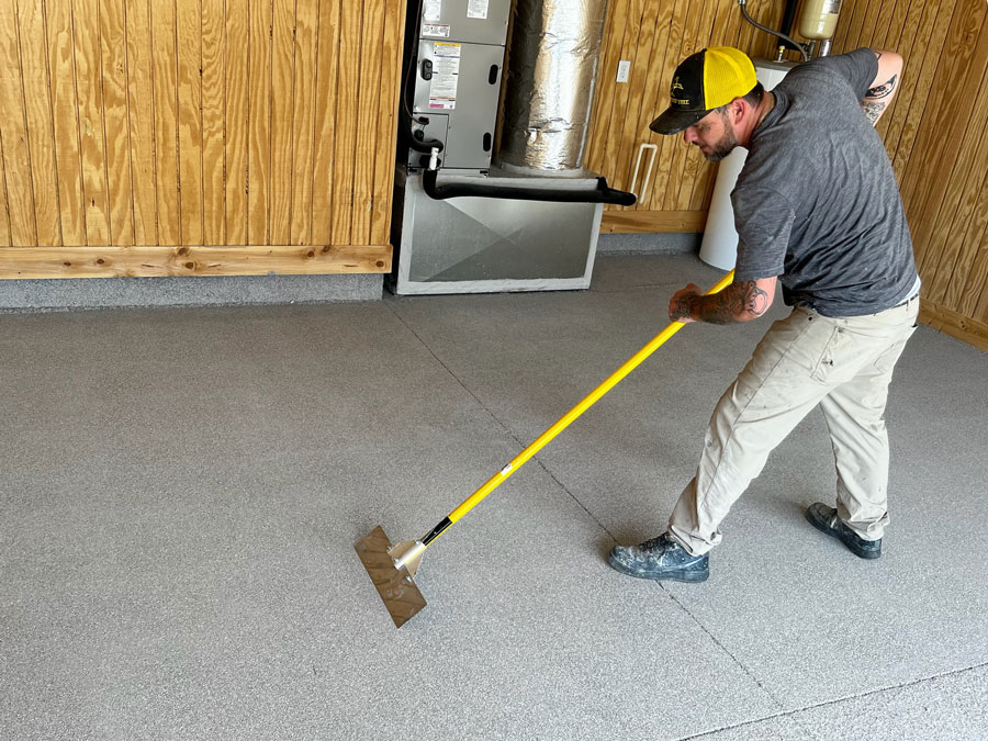 Scrape off excess flake to level the floor and prepare it for final sealing.