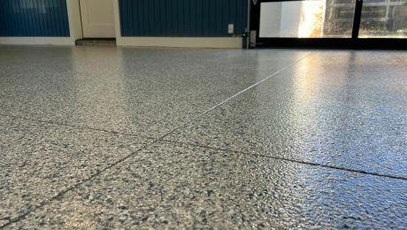 Apply a UV-stable polyaspartic topcoat. Your new floor will be ready for light foot traffic in just 6-8 hours.